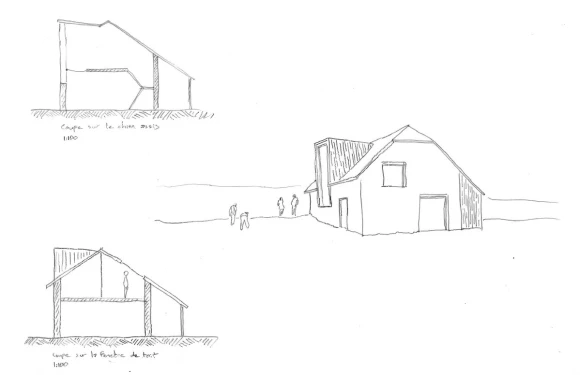 Le projet concerne la réhabilitation d’une bergerie, ses murs de pierre et son toit d’ardoise persistant sur le plateau d’un environnement montagneux. La structure principale de la bergerie est conservée, sa toiture est quant à elle reprise à neuf, une légère surélévation permettant la mise en place d’un étage confortable. Un poêle traverse les niveaux du projet à travers le vide central de l’escalier, et une double hauteur canalise les apports lumineux naturels. Les parois neuves sont en paille porteuse, une extension venant s’inscrire contre la bergerie en épousant la forme de la toiture.