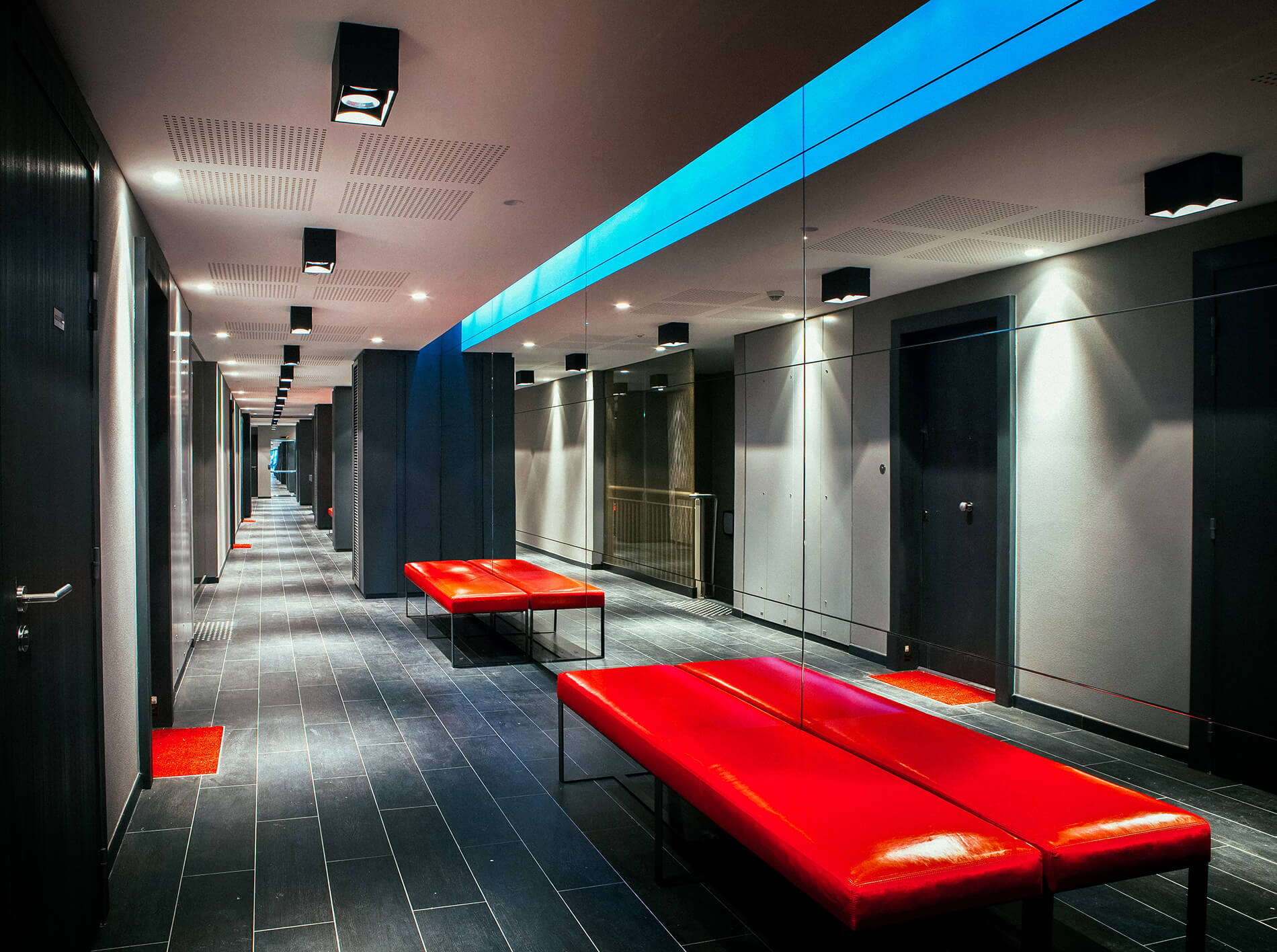 Les façades sont végétalisées et peuvent être considérées comme un mur végétal à une échelle plus importante. La conception de ces façades nous a permis de développer un nouveau concept de jardinières lumineuses en Corian extrudé, de couleur blanche et équipées de LED.