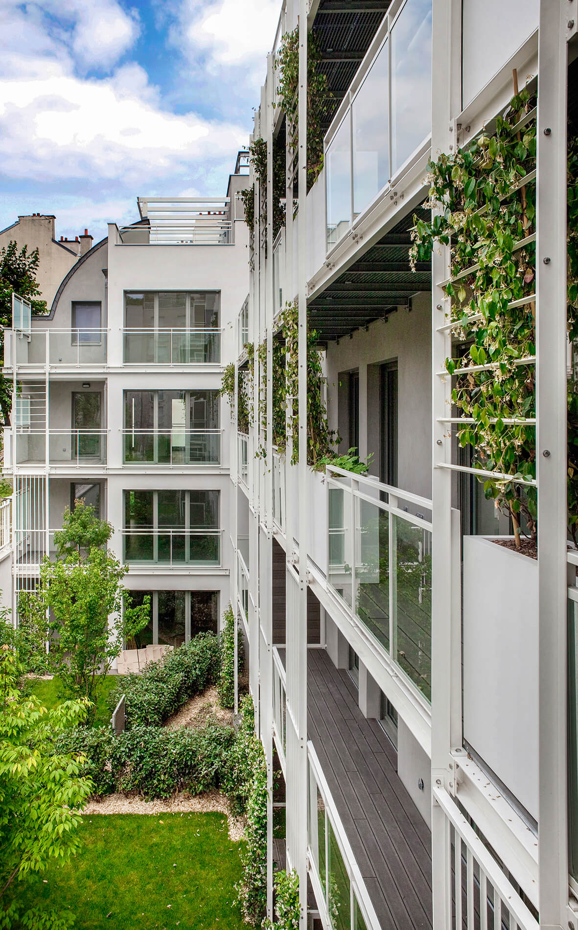 · Au nord, d'une ouverture sur le jardin de la parcelle du 48 Quai de Jemmapes, en continuité avec nos propres espaces libres paysagers.